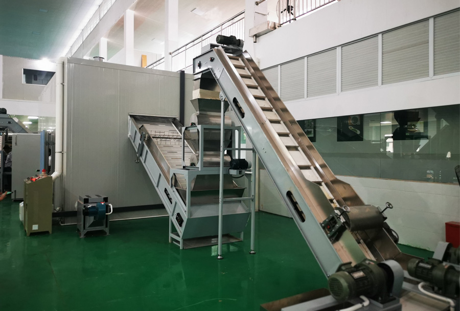 作業(yè)原理:連續(xù)發(fā)酵機(jī)可在發(fā)酵過程中實(shí)現(xiàn)供氧、換氣、加溫、增濕等功能,科學(xué)布局溫、濕度管道保證相對恒定的發(fā)酵環(huán)境,連續(xù)發(fā)酵機(jī)主機(jī)置于發(fā)酵箱體(房)內(nèi),設(shè)置多層輸送網(wǎng)帶,揉捻葉達(dá)到發(fā)酵要求后,自動流出到下個環(huán)節(jié)。